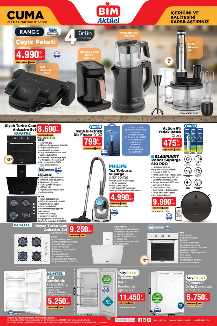 BİM, 20 Haziran Cuma günü itibarıyla geçerli olacak yeni aktüel ürünler kataloğunu yayımladı. Bu hafta teknoloji tutkunları, kamp severler ve ev alışverişi yapanlar için kaçırılmayacak indirimler dikkat çekiyor.
