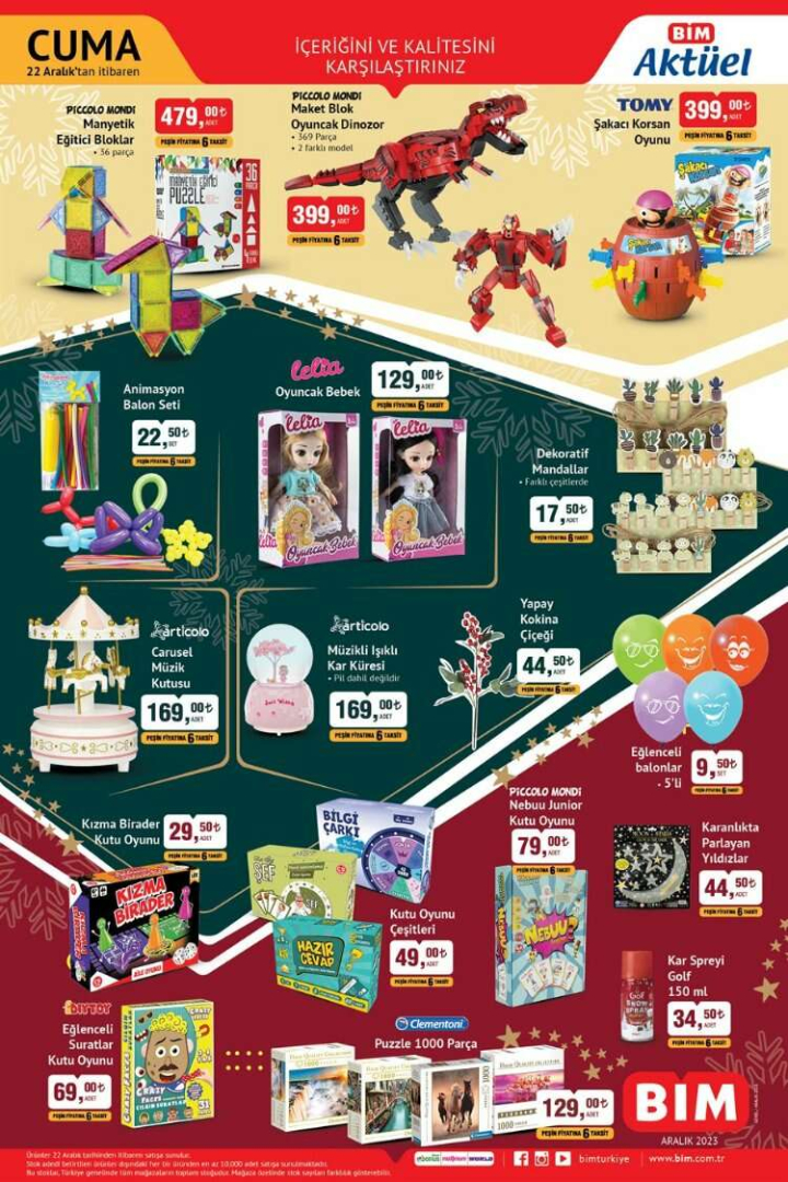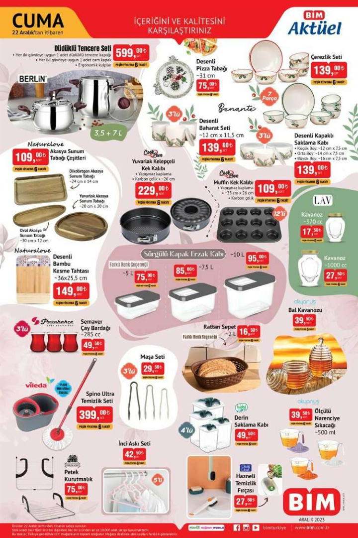 BİM aktüel ürünler 22 Aralık kataloğu yayınlandı. BİM'de bu hafta; küçük ev aletlerinden, beyaz eşyalara, ankastre setinden, kozmetik malzemelere, giyim seçeneklerinden mutfak eşyalarına birçok kategoride ürün indirimli fiyatlarıyla alıcılarını bekliyor. İşte BİM aktüel 22 Aralık 2023 kataloğu ve fiyat listesi...