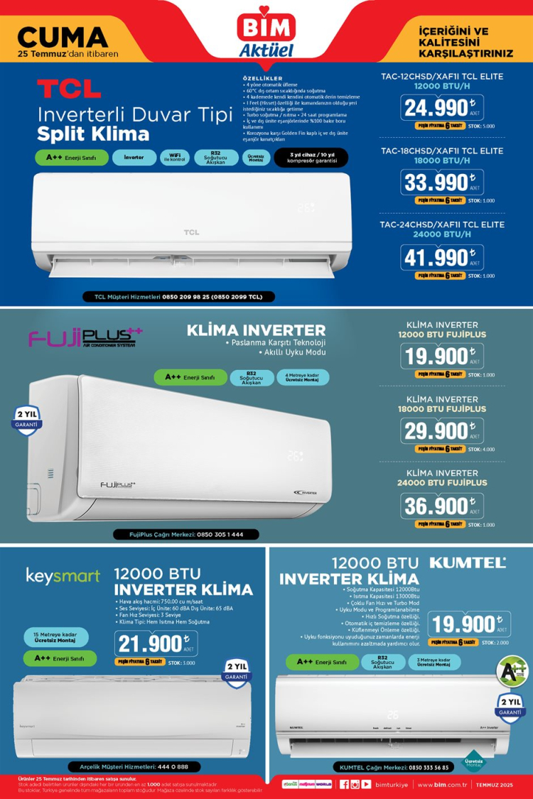 BİM, her hafta olduğu gibi bu hafta da alışveriş tutkunlarının merakla beklediği 25 Temmuz 2025 Cuma aktüel ürünler kataloğunu yayımladı. Toplam 7 sayfadan oluşan geniş ürün yelpazesiyle dikkat çeken katalogda kamp ekipmanlarından elektrikli bisiklete, mutfak ürünlerinden elektronik cihazlara kadar onlarca farklı ürün cazip fiyatlarla satışa sunulacak.