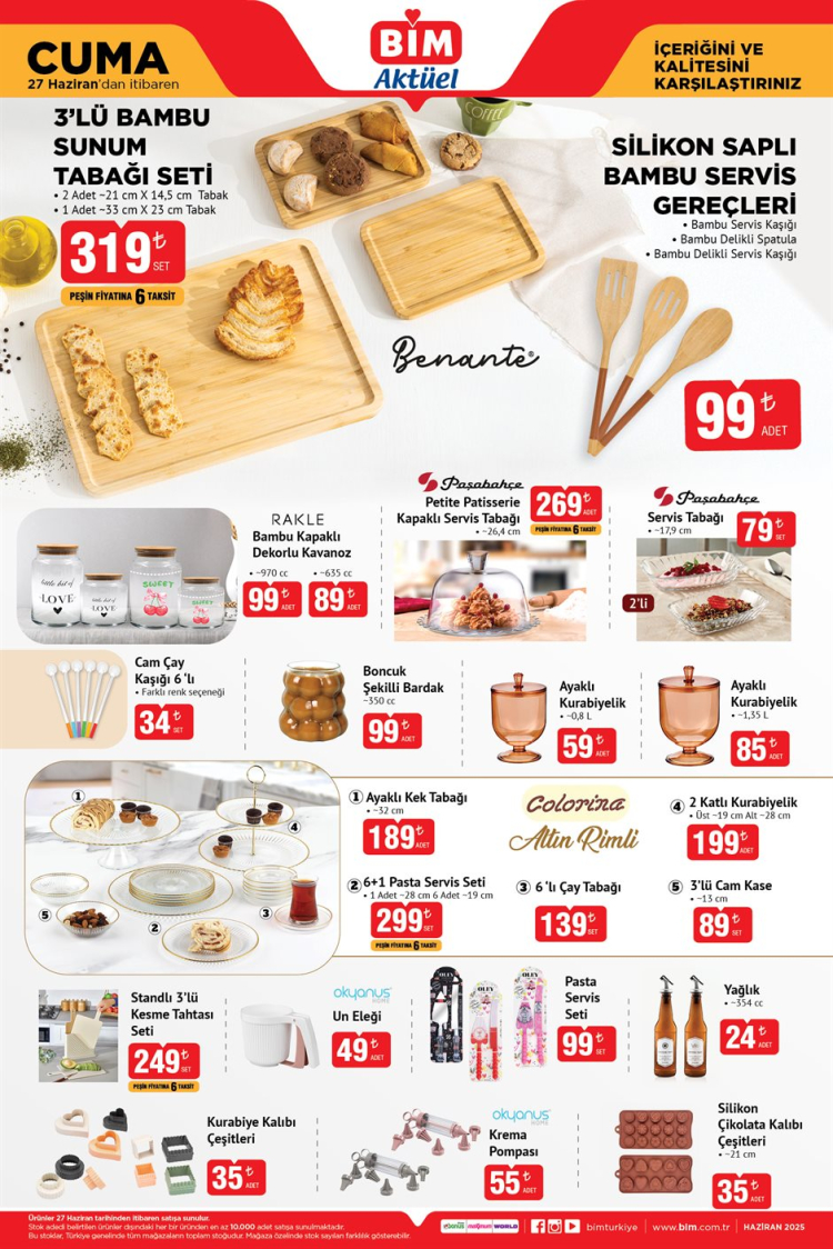 Her hafta Salı ve Cuma günleri için özel olarak hazırlanan BİM aktüel ürünler kataloğunda 27 Haziran Cuma günü raflara gelecek ürünler belli oldu. Sınırlı sayıda mağazaya dağıtılacak ürünler büyük ilgi görmeye aday.