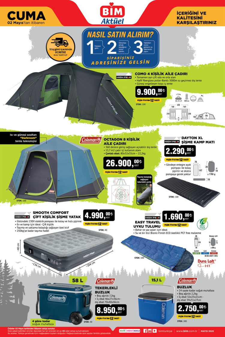 Bu hafta, kamp ürünleri kadar ev eşyaları ve elektronik ürünlerde de cazip fiyatlar dikkat çekiyor. Yaz ayları öncesinde uygun fiyatlarla kampçılık ekipmanları almak isteyenler, BİM mağazalarına uğrayarak bu fırsatlardan yararlanabilecek. Ayrıca evde kullanım için gerekli olan tekstil ürünlerinden elektronik eşyalara kadar geniş bir ürün yelpazesi ile alışverişseverler BİM’in cazip fırsatlarını kaçırmamalı.