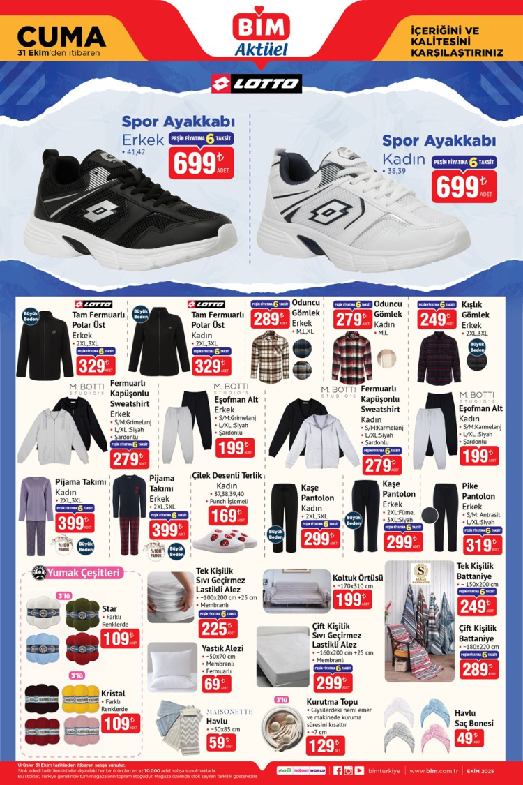 BİM, 31 Ekim Cuma günü raflara çıkacak yeni aktüel ürün kataloğunu duyurdu. Elektronikten mutfağa, tekstilden ev eşyalarına kadar onlarca üründe büyük indirimler müşterileri bekliyor.