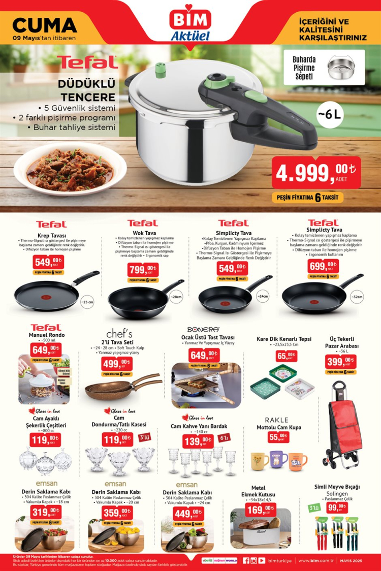 Türkiye'nin en çok tercih edilen zincir marketlerindenBİM, her hafta olduğu gibi bu hafta da cazip fiyatlarla alışverişseverleri sevindirecek. 6 Mayıs Salı ve 9 Mayıs Cuma tarihlerinde geçerli olacak BİM aktüel ürünler kataloğunda, gıda ürünlerinden mutfak araç gereçlerine, elektronik eşyadan çocuk oyuncaklarına kadar onlarca ürün indirimli fiyatlarla tüketiciyle buluşacak. Özellikle Anneler Günü için düşünülmüş mutfak setleri ve ev aletleri dikkat çekerken, fiyat performans açısından da rekabetçi bir tablo sunuluyor.