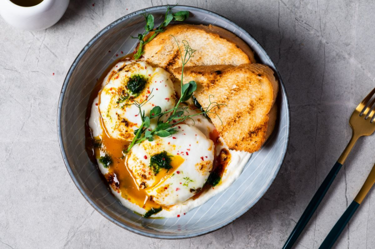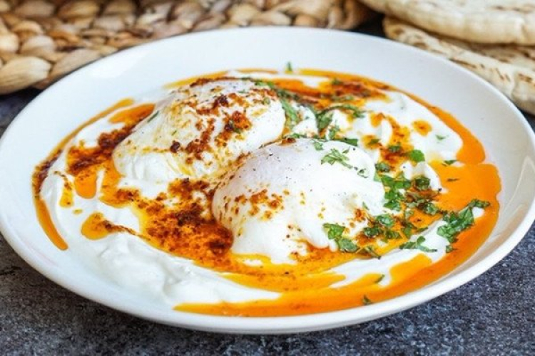 Yumurtaları Pişirin: Bir tencereye su, tuz ve elma sirkesini koyarak kaynatın. Su kaynadığında yumurtaları dikkatlice kırarak suya ekleyin. Yumurtalar 4-5 dakika piştikten sonra, kepçe yardımıyla yavaşça alın ve yoğurdun üzerine yerleştirin.