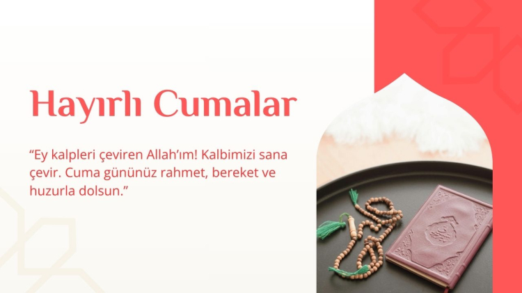 “Rabbim; bu mübarek Cuma gününde gönlümüze huzur, evimize bereket, ömrümüze sağlık ve sevdiklerimize mutluluk versin. Hayırlı Cumalar dilerim.”