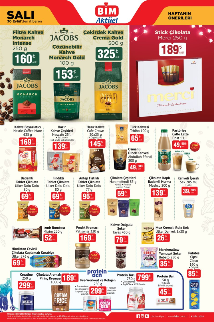 Türkiye genelindeki BİM mağazalarında Eylül ayının son aktüel kataloğu satışa çıktı. Katalogda kahve çeşitlerinden çikolataya, temizlik ve hijyen ürünlerinden kişisel bakım ürünlerine kadar geniş bir ürün yelpazesi yer alıyor. Ekim ayının ilk aktüel kataloğu ise 3 Ekim Cuma günü raflarda müşterilerle buluşacak.