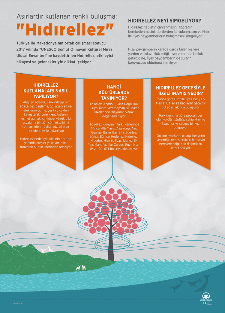 2017 yılında UNESCO tarafından Somut Olmayan Kültürel Miras Listesi’ne alınan Hıdırellez, Türkiye başta olmak üzere geniş bir coğrafyada kutlanmaya devam ediyor.