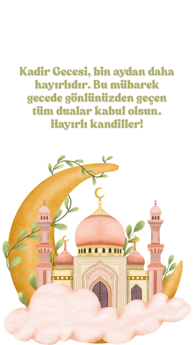 "Allah'ın rahmeti, bu mübarek geceyi, her birimizin kalbine huzur ve merhamet getirsin. Kadir Geceniz mübarek olsun!"