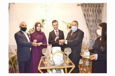 Harita Mühendisi Tahir Muhammed Örnek ile İlahiyat öğrencisi Yaren Alanoğlu’nun pandemi nedeniyle aile arasında yapılan nişan törenlerine sınırlı sayıda davetli katıldı. Pandemi kurallarına uygun olarak yapılan nişan töreninde genç çiftlerin yüzüklerini damadın dedesi İş insanı Halil Arslan taktı.