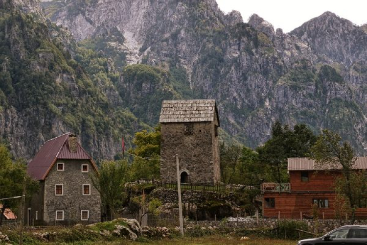 Theth köyü, geleneksel taş evleri ve dağ manzarasıyla izole bir cennet gibi.