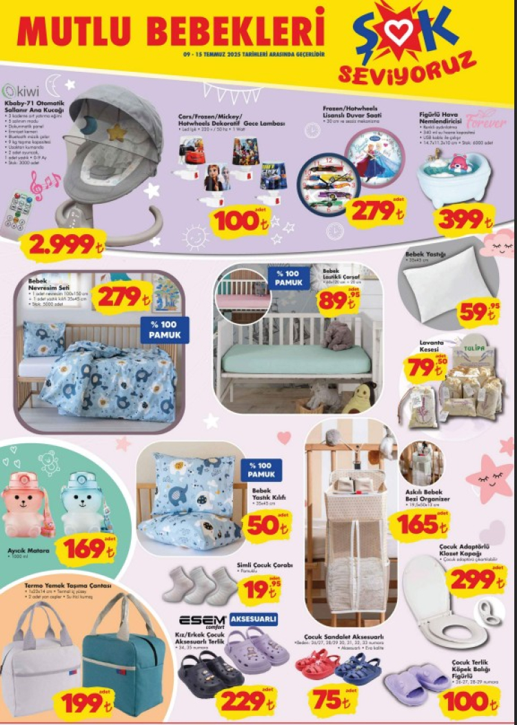 Her Çarşamba günü yenilenen aktüel ürünler kataloğu ile tüketicilerin ilgisini çeken ŞOK Market, 9 Temmuz 2025 Çarşamba günü geçerli olacak indirimli ürünler listesini paylaştı. Mutfak gereçlerinden temizlik malzemelerine, elektronik ürünlerden bebek bakımına kadar geniş bir ürün yelpazesi bu hafta raflarda yerini alıyor.