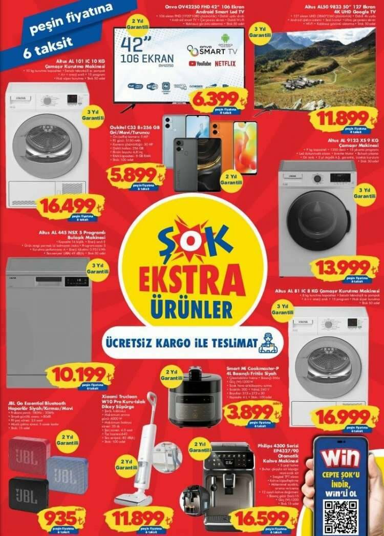 24-30 Ocak 2024 ŞOK aktüel kataloğunda yer alan birbirinden indirimli ürünler otomatik kahve makinesi, kurutma makinesi, kitaplık gibi ürünler yer aldı.