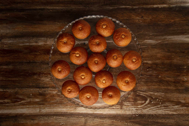 Hamurdan ceviz büyüklüğünde parçalar kopartın ve elinizle yuvarlayın. Üzerini hafifçe düzleyip ortasına birer bütün fındık yerleştirin.