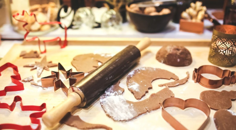 Hamuru açıp yılbaşı kurabiyesi kalıplarıyla şekil verin.