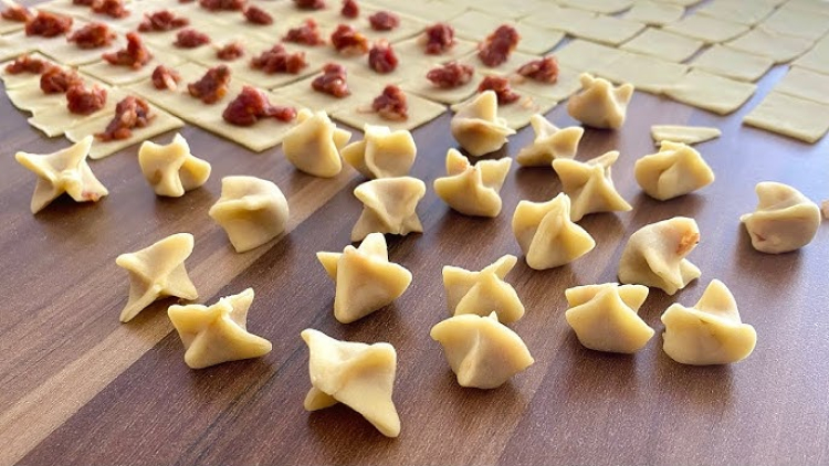 Mantı Tarifi: Ev hanımlarının sıkça yaptığı ve akşam yemeklerinin gözdesi olan mantı, açılmış yufkanın içerisine konulan iç malzeme ile yapılır.
