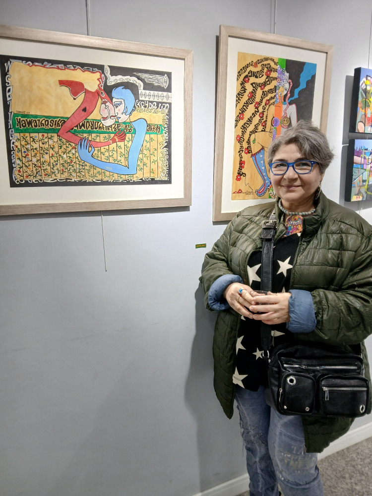 Uğur Umut, çizdiği resmin önünde, mutluluğunu yansıtıyor. Kadını değişik çizgi biçimleriyle anlatıyor. Kadının gücünü öne çıkarıyor…