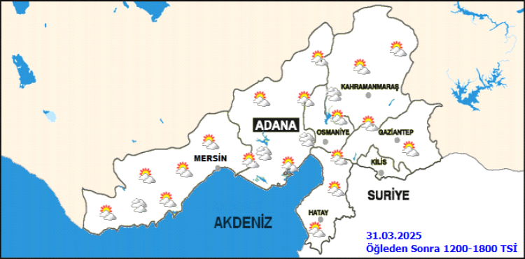Ramazan Bayramı’nın üçüncü gününe denk gelen 1 Nisan Salı günü, Adana ve çevre illerde parçalı ve çok bulutlu bir hava hakim olacak. Gün boyunca aralıklı mevzi sağanak yağışlar beklenirken, özellikle Adana, Osmaniye, Kahramanmaraş ve Hatay çevrelerinde bu yağışların daha belirgin olması öngörülüyor.
