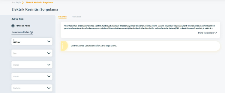 Hatay elektrik kesintisi listesi için tıklayınız.