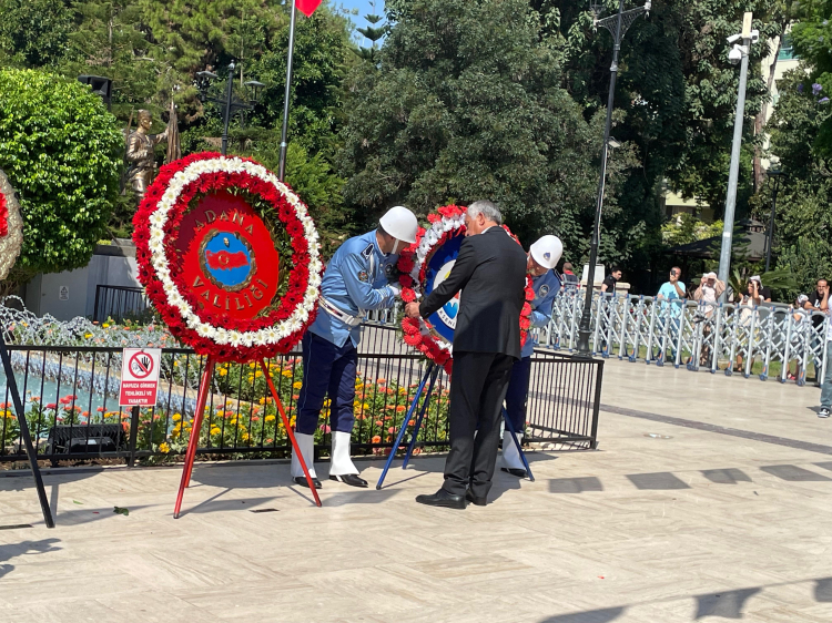Adana'nın 30 Ağustos Zafer Bayramı'nın 102. yıl dönümünde ilk kutlama Atatürk Parkı'nda gerçekleştirildi. Tören, Atatürk Anıtı'na çelenk bırakılmasıyla başladı. Adana Valisi Yavuz Selim Köşger, 6. Kolordu Komutanı Tümgeneral Mehmet Özeren ve Adana Büyükşehir Belediye Başkanı Zeydan Karalar sırasıyla çelenklerini sunarak saygılarını ifade etti.