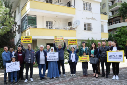 Adana'da 3 kez 'orta hasarlı' raporu verilen ancak en sonunda bir iş yerinin itirazı üzerine 'az hasarlı' raporuna çevrilen apartman sakinleri eylem yaptı. Vatandaşlar, evleri Adana'nın en pahalı semtlerinden birinde olmasına rağmen binanın oturulamayacak kadar kötü durumda olduğu için yıkılmasını talep etti. İş yeri ve apartman sakinleri arasında yaşanan anlaşmazlıkta son kararı mahkeme verecek.