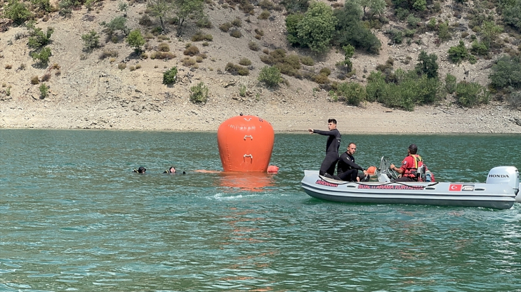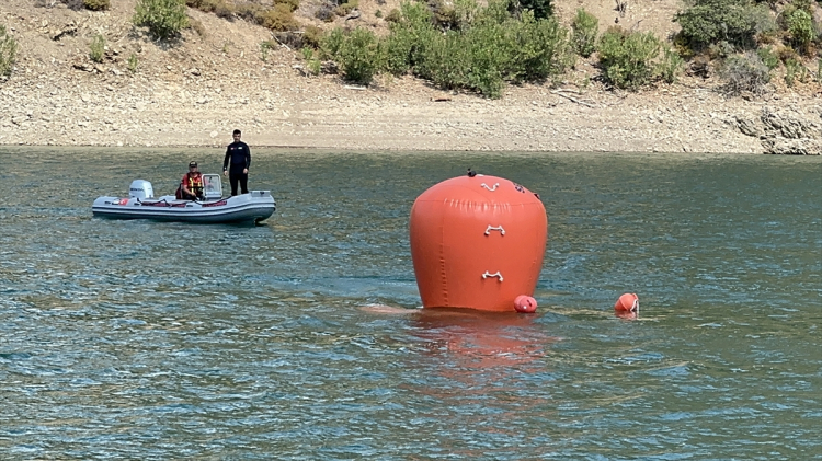 Su seviyesi düşürülen baraj gölünde, dün yaklaşık 35-40 metre derinlikte bir kısmı balçıkta olan helikopteri kaldırma balonlarıyla 15 metre derinliğe çıkaran ekipler, çalışmalarını sürdürdü.