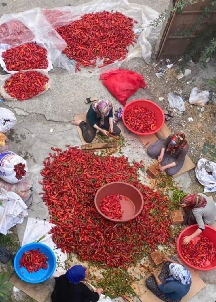 Adana'nın Seyhan ilçesinde, hazır salçalara güvenmeyip ev ekonomisine katkı sunmak isteyen vatandaşlar, kırmızı biberleri temizleyip kurutmaya başladı. Yaz aylarının vazgeçilmezi olan ev yapımı salça için harekete geçen vatandaşlar, biber satıcılarından çuvallarla salçalık biber satın alarak hummalı bir çalışma başlattı.