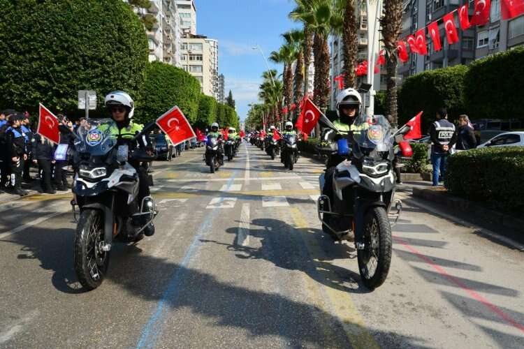 Saygı duruşunda bulunulması ve İstiklal Marşı'nın okunmasının ardından konuşan İl Emniyet Müdürü Ahmet Hakan Arıkan, Emniyet Teşkilatının, ülkenin huzur ve güvenliği, kamu düzeninin korunması ve devamının sağlanması için her zaman üstün bir gayret ve fedakarlık içerisinde çalıştığını söyledi. Arıkan, Emniyet Teşkilatının vatandaşların can ve mal emniyetinin korunması, olayların aydınlatılması ve faillerin yakalanması amacıyla yapılan çalışmalarda da halkın güven ve desteğini kazandığını ifade etti. Törenin ardından çeşitli polis araçları Atatürk Caddesi'nden geçiş yaptı. Geçişe atlı polis ekibi de katıldı.