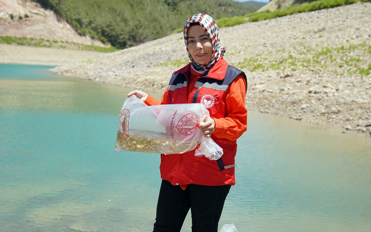 Tarım ve Orman Bakanlığı tarafından yürütülen "Su Kaynaklarının Balıklandırılması Projesi" kapsamında, Osmaniye’nin Düziçi ilçesine bağlı Yarbaşı Beldesi'nde bulunan Karacaören Baraj Göleti’ne 10 bin adet pullu sazan yavrusu salındı.