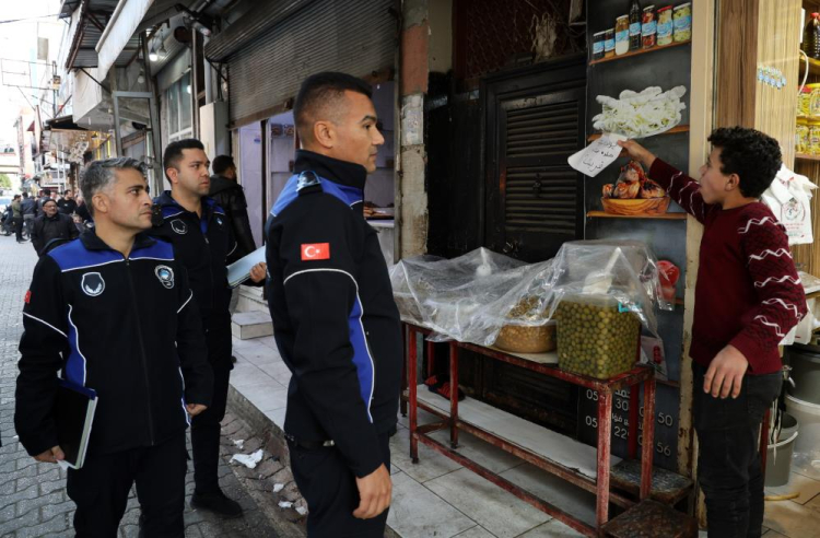 Adana'da zabıta ekiplerinden kaldırım işgali ve hijyen denetimi