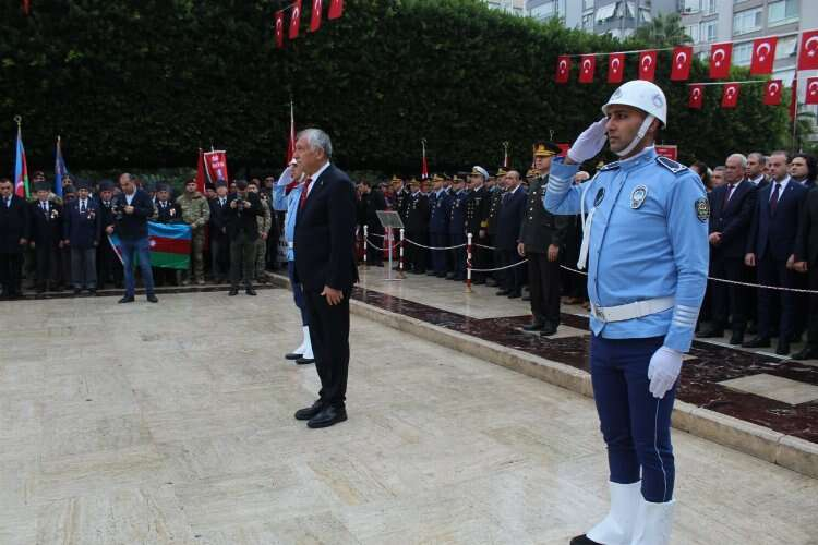Sırasıyla; Adana Valiliği, Garnizon Komutanlığı ve Adana Büyükşehir Belediyesi çelenk bıraktı.