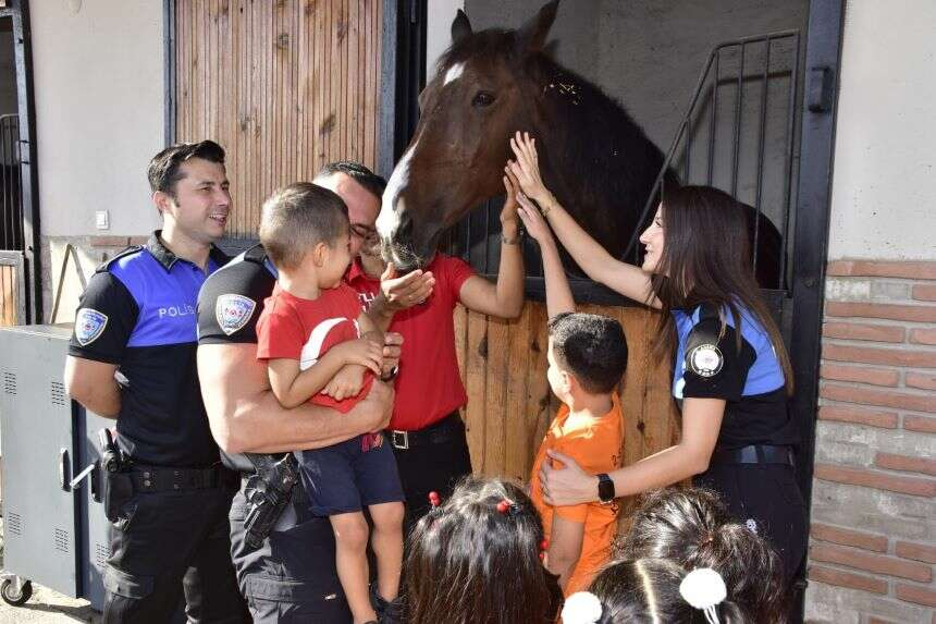 Adana Emniyet Müdürlüğü Toplum Destekli Polislik Şube Müdürlüğü tarafından gerçekleştirilen etkinlikte; lösemiye karşı amansız bir savaş veren çocuklar, aileleri ile birlikte Çevik Kuvvet Şube Müdürlüğü bünyesinde yer alan Atlı Polis Grup Amirliği’ni ziyaret etti. Burada polis abla ve ağabeyleriyle birlikte toplumsal olaylara müdahale için özel olarak yetiştirilen atları besleyen minikler, daha sonra ata binip keyifli anlar yaşadı.