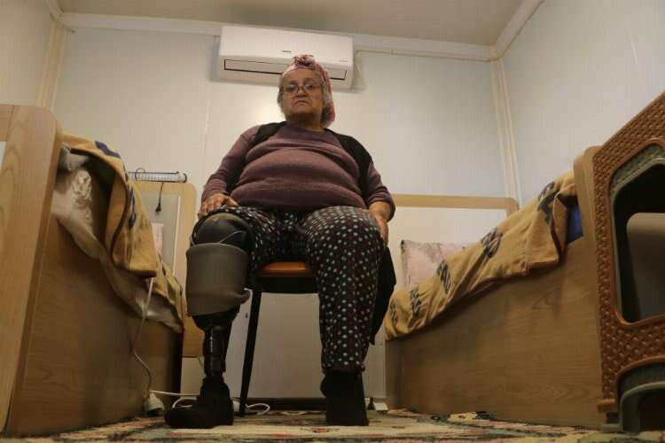 Asrın felaketinde hem annesini hem de bacağını kaybeden 57 yaşındaki depremzede Emine Kahramanoğulları, yaşadığı bütün olumsuzluklara rağmen hayat mücadelesine yeni yuvası olan konteynerinde protez bacağıyla devam ediyor.
