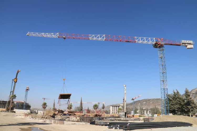Asrın felaketinde büyük yıkımın yaşandığı Hatay'ın Antakya ilçesinde afet konutlarının inşaatları, ekiplerin 7 gün 24 saat çalışma prensibiyle devam ediyor.