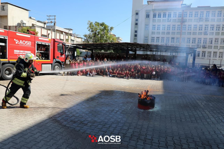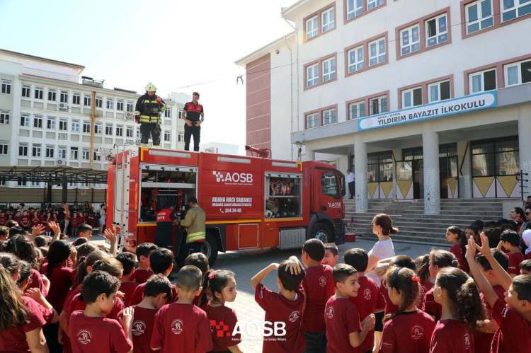 Adana Hacı Sabancı Organize Sanayi Bölgesi, kent, bölge ve dolayısıyla ülke ekonomisine değer katmakla kalmayıp, sosyal sorumluluk projeleriyle farkını hissettiriyor. Gelecek nesillerin eğitimine desteği önceliğine alan AOSB Bölge Müdürlüğü, İtfaiye Haftası vesilesiyle öğrenciler için hem eğlenceli hem de öğretici bir etkinlik düzenledi. İtfaiye Haftası etkinlikleri çerçevesinde Yıldırım Bayazıt İlkokulu öğrencileriyle buluşan AOSB İtfaiye Birimi, “Çocuklarda Yangın ve Tatbikat Bilinci" temalı bir organizasyon düzenledi.