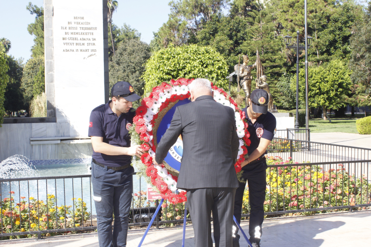 Adana’da İtfaiye Haftası kapsamında Atatürk Parkı’nda çelenk sunma töreni düzenlendi. Törene, Adana Büyükşehir Belediyesi İtfaiyesi Daire Başkanı Ercan Kandemir ve itfaiye personelleri katıldı. Program, Atatürk Anıtı’na çelenk sunulması, saygı duruşu ve İstiklal Marşı’nın okunmasıyla başladı. Ardından, Ercan Kandemir, itfaiyeciler haftası hakkında konuşma yaptı. Yaptığı konuşmada özlük hakları ve sosyal haklarının iyileştirilmesi gerektiğine dikkat çekerek, bu konuda yapılan çalışmaları yakından takip ettiğini belirtti. Kandemir, itfaiyeciliğin bir meslek olarak kabul edilmesi yönünde yerel milletvekillerine dosya hazırlattıklarını ifade etti ve tüm itfaiyecilerin İtfaiye Haftası’nı kutladı.