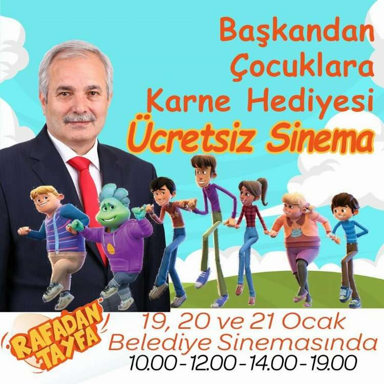 Kozan Belediye Başkanı Kazım Özgan, öğrencilere karne hediyesi olarak 3 gün boyunca Rafadan Tayfa filmini ücretsiz izlettirecek.