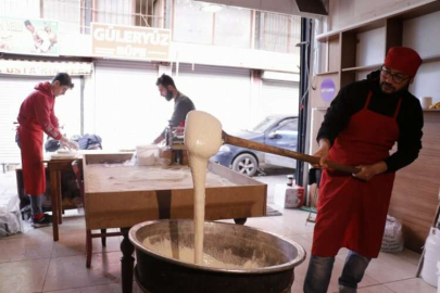- Ramazana özel üretilen küncülü helva, kentte büyük yıkıma neden olan depremlere rağmen bu yıl da iftar sofralarında yerini aldı