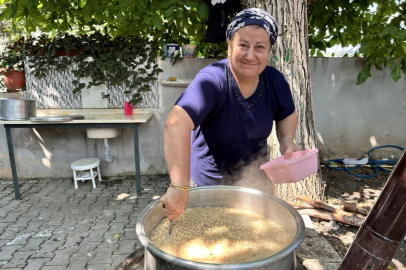 Kahramanmaraş merkezli depremlerde ağır hasar olan Hatay'da asrın felaketinin yaraları sarılıyor. Birlik ve beraberlik içerisinde Arsuz ilçesi Pirinçlik Mahallesi'nde Nazmiye Şimşek, Muharrem ayı dolayısıyla odun ateşinde aşure pişirerek vatandaşlara dağıttı.