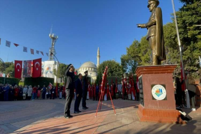 Atatürk Anıtı'na çelenk sunulmasıyla başlayan etkinlikte saygı duruşunun ardından İstiklal Marşı okundu.