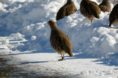 Doğa Koruma ve Milli Parklar (DKMP) Erzurum Şube Müdürlüğünde görevli veteriner hekim Selçuk Albayrak bir süre önce kırsal alanda karlar üzerinde dolaşan çok sayıda çil keklik gördü.