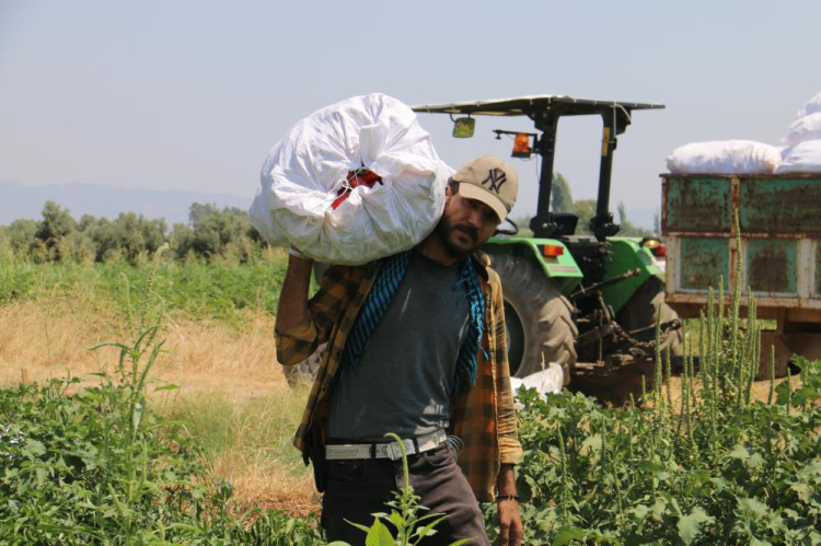 Elini yüzüne sürdüğü zaman yaşadığı zorluğu ifade eden İnci Yeşil, “Biber topluyoruz, sıcak havada. Ekmek paramız için çalışıyoruz, sıcak havada zor oluyor. Biber acı, şartlar zor. Yevmiyemiz 600 TL, rabbim yardımcımız olsun. Elini yüzüne sürersen yakar, gözlerin su damlatır” dedi.