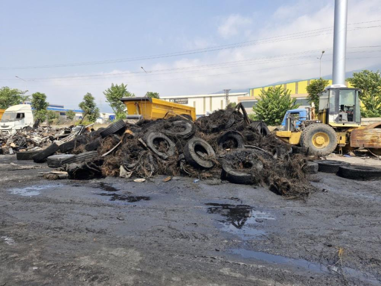Hatay'da lastik deposunda yaşanan yangında onlarca lastik zarar görerek kullanılamaz hale geldi.