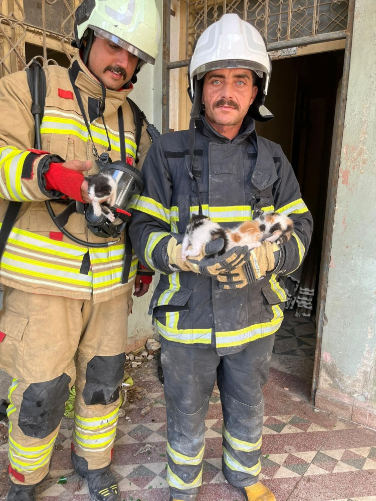 Hatay'da yürek ısıtan kurtarma: Yanan binadan yavru kedileri itfaiye çıkardı!