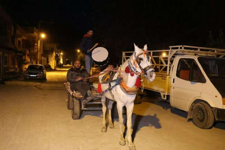 Kahramanmaraş merkezli depremlerde en çok yıkıma uğrayan Hatay’da vatandaşlar, geçtiğimiz yıllarda yaşadıkları Ramazan aylarını özlüyorlar. Ramazan ayını buruk bir şekilde karşılayan kentte, Ramazan davulculuğu geleneği enkaza dönen sokaklarda yaşatılmaya devam ediyor. Bu geleneği devam ettiren 36 yaşındaki Sabit Erdoğan, Antakya ilçesi Narlıca Mahallesi’nde at arabası üzerinde davul çalarak vatandaşları sahura kaldırıyor. At arabası üzerinde davul çalarak, maniler söyleyen Erdoğan, at arabasının geçemeyeceği konteyner kentlerde vatandaşları yürüyerek elinde davuluyla uyandırıyor.