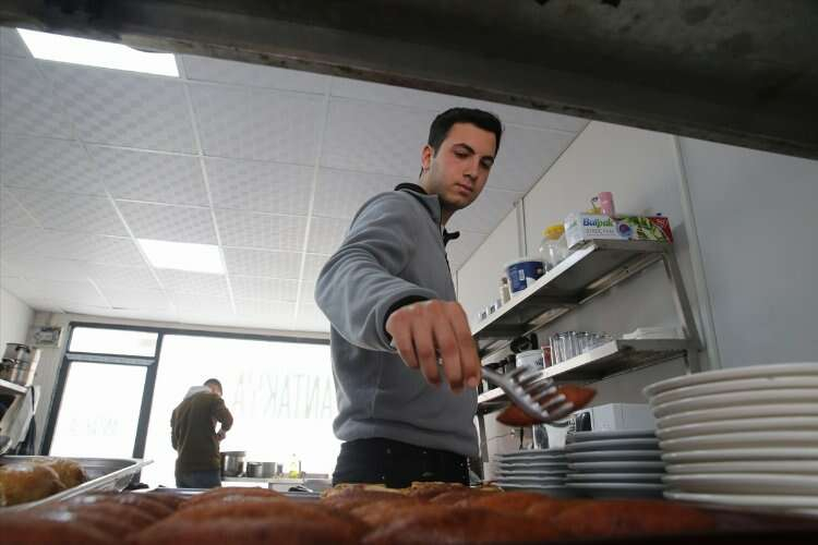 Hatay'ın yöresel lezzetleri prefabrik lokantada müşterilere sunuluyor