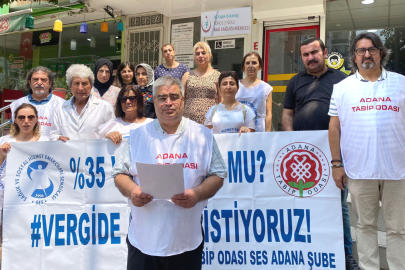 Adana Tabip Odası Başkanı Uzm. Dr. Özden Polatöz, burada yaptığı açıklamada, aile hekimleri ve sağlık çalışanlarına uygulanan yüksek vergi kesintisinin son bulmasını istedi.