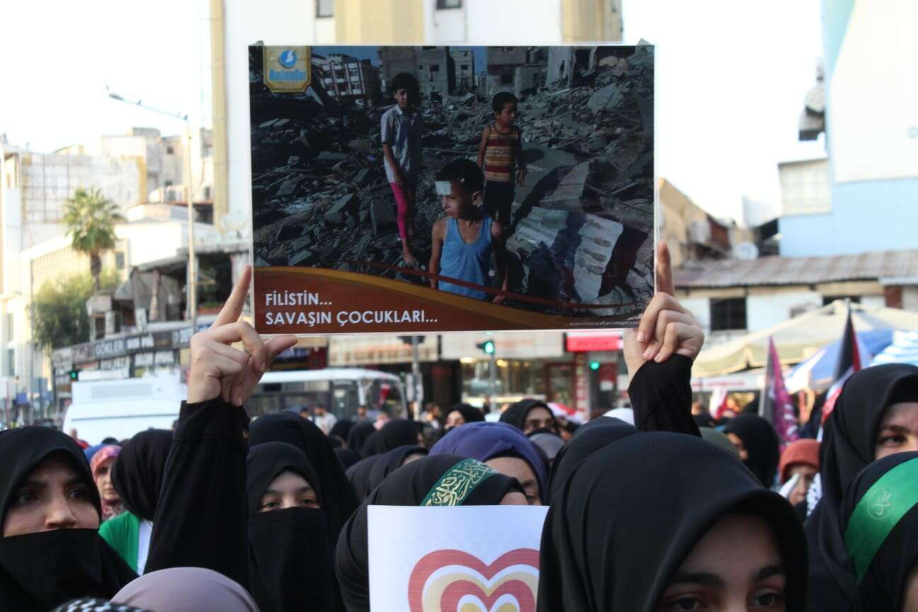 Adana'da Hüda-Par tarafından düzenlenen Filistin'e destek buluşmasında, İsrail'in Filistin'e yönelik saldırıları protesto edildi.