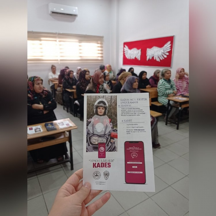 Adana’da kadınlara Kadın Acil Destek İhbar Sistemi (KADES) uygulaması konusunda bilgilendirmeler yapılmaya devam ediyor.