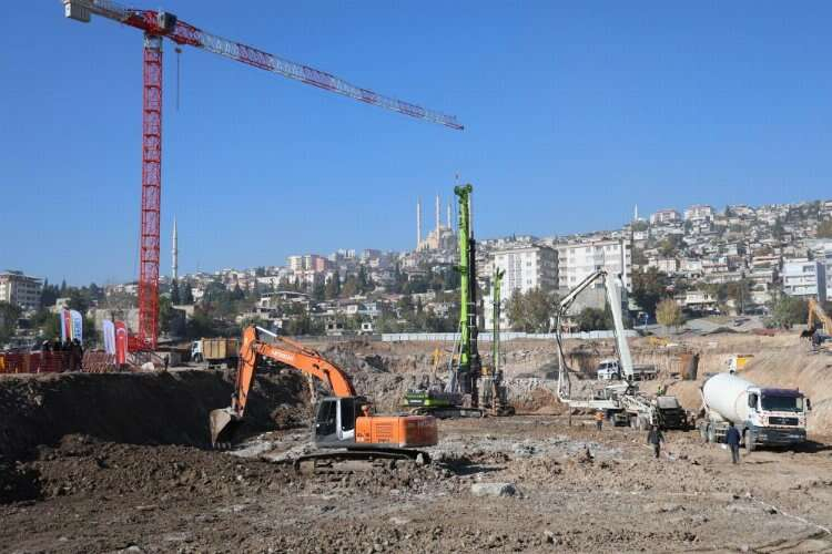Temel hafriyatlarının kaldırılmasının arından fore kazık ve demir yerleştirme işlemleri ile devam edilen bölgede, bir yandan beton dökme işlemleri de sürüyor. Alan dron ile görüntülenirken, çalışmaların yoğun şekilde devam ettiği görüldü.