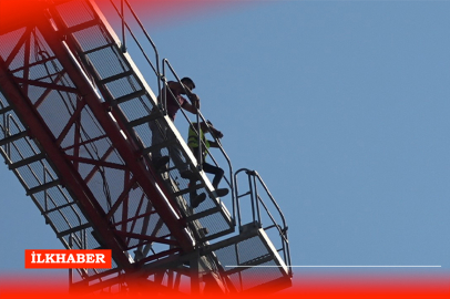 Kahramanmaraş'ta işçiler maaş alamadıkları için kule vincin tepesine çıktı